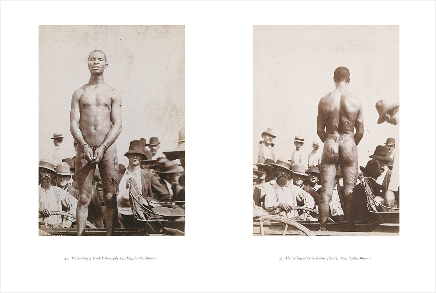 The Tuskegee Institute records the lynching of 3,436 blacks between 1882 and 1950. Many times, a photographer was present to capture these events. Often, the images were made into postcards and sold as souvenirs to the crowds in attendance. These images are some of photography's most brutal, surviving to this day so that we may now look back on the terrorism unleashed on America's African American community and perhaps know our history and ourselves better. The almost one hundred images reproduced here are a testament to the camera's ability to make us remember what we often choose to forget.