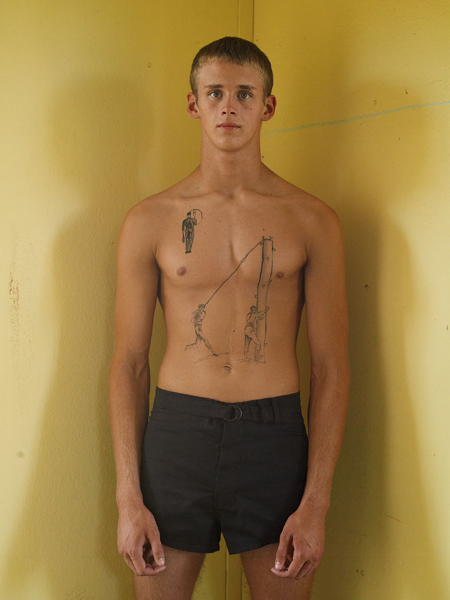 In his second book, American photographer Luke Smalley revisits the themes from his 2002 monograph Gymnasium. After receiving a degree in sports medicine from Pepperdine University and then working as both a model and personal trainer, Smalley became fascinated with the archetype of the athletic American male, and sought to explore its more playful side. His compositions were inspired by early 20th-century fitness manuals and high school yearbooks.